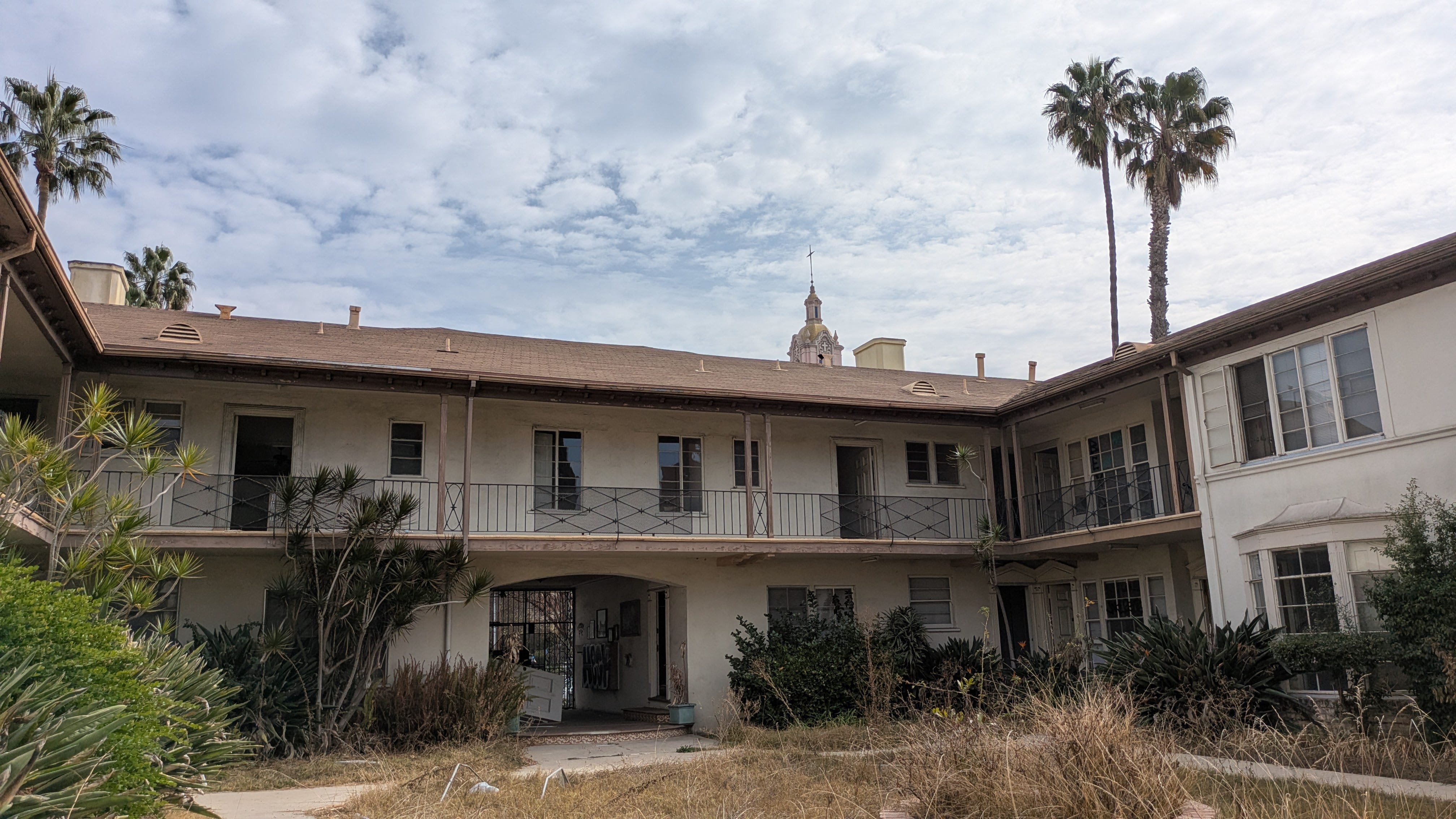 Our prayer is that the 84 beautiful, vacant RSO Selma Las Palmas Courtyard Apartments in Hollywood will not catch fire between now and then. Usually when we visit, we see the guards who are assigned to patrol the property, and we appreciate that someone—longtime property owner Mort La Kretz or Crossroads project developer Harridge Development Group—is paying for them to be there.