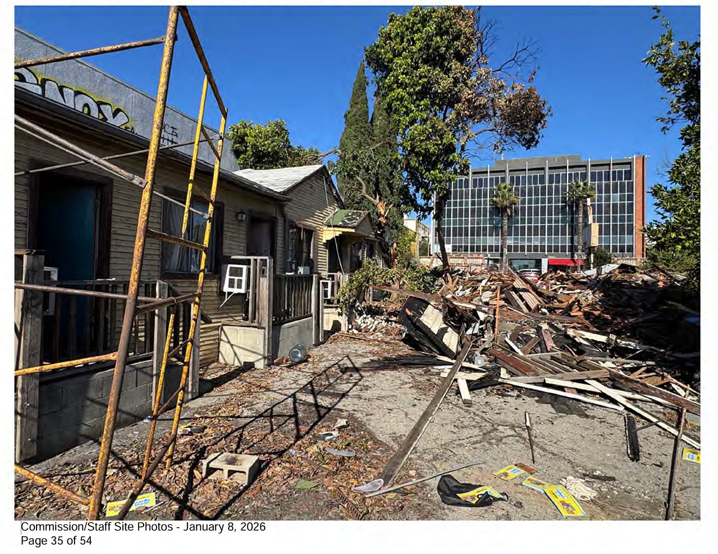 The site visit photographs taken during the Cultural Heritage Commission tour four days after the fire are stark evidence of what we believe was LAFD’s wrongful demolition and the squalid conditions that have been allowed to exist. See pages 8+ here.