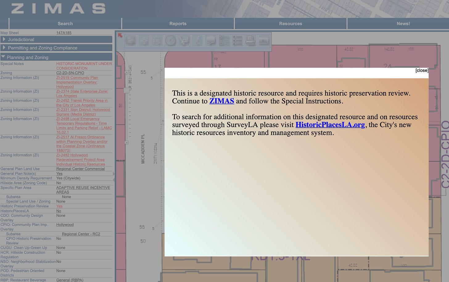 If the firemen looked Hollywood Center Motel’s address up on the city’s ZIMAS portal, a flag would pop up warning them that El Nido and the bungalows were protected.
