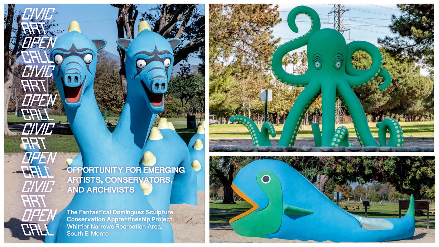 Cool gig alert! Artists, Conservators, Archivists and Preservationists invited to participate in restoration of Benjamin Dominguez' menagerie of sea creatures and monsters at Legg Lake in South El Monte. More info at: