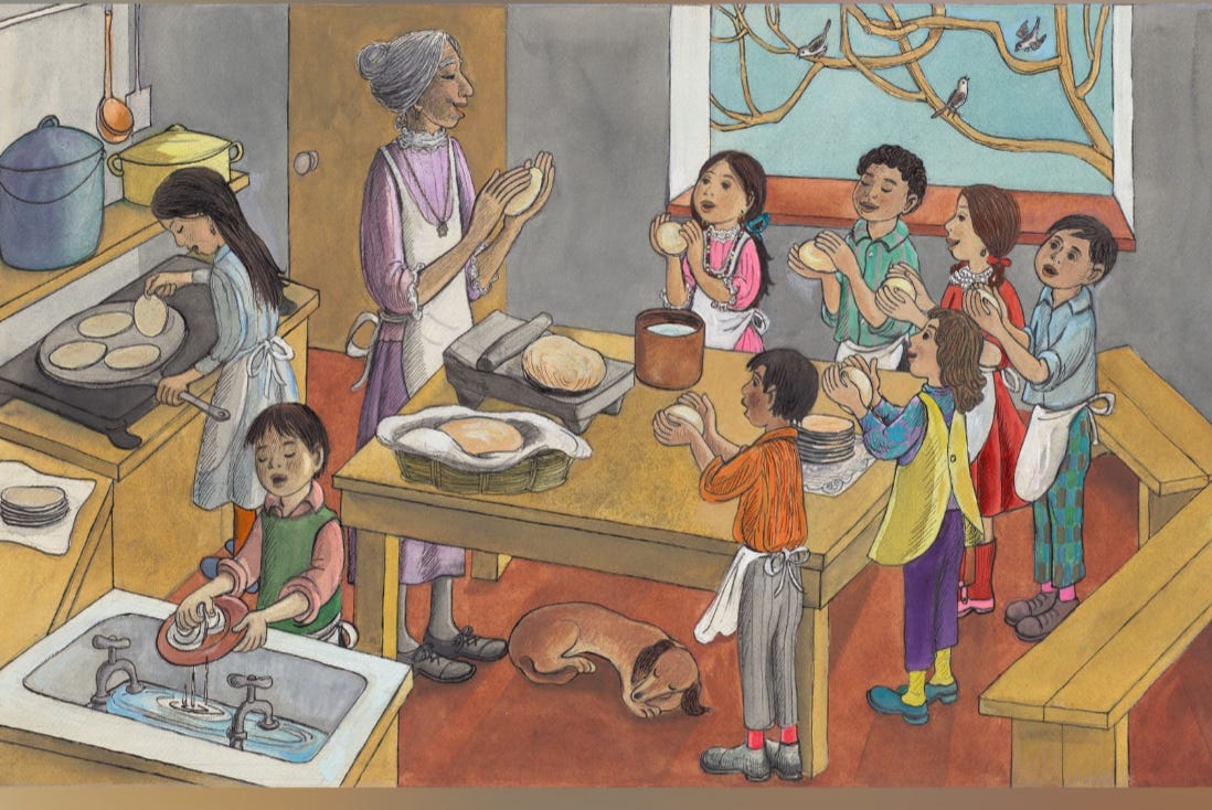 The Lucas Museum website has been updated to highlight this charming Pico Rivera tortilla cooking class scene from Leo Politi’s Three Stalks of Corn (1976), just a taste of the treasures in the artist’s family’s collection.