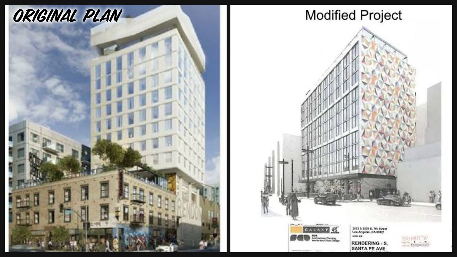 We think the Rendon Hotel project that was approved in 2022 is pretty cool, and worth completing, in the creative, funky spirit of the Arts District as it used to be. Let’s hope it’s not too late for that to still happen.
