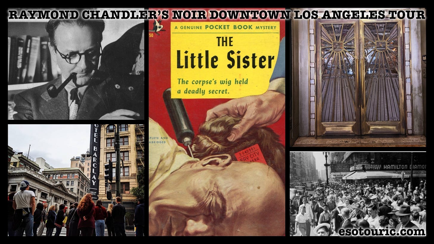 Saturday’s tour is Raymond Chandler’s Noir Downtown Los Angeles, a ramble around the Art Deco towers and Beaux Arts hotel lobbies that feature in the master detective novelist’s life as an oil company executive and in his fiction, to sleuth out the real life crimes and characters who inspired his work. Join us, do!