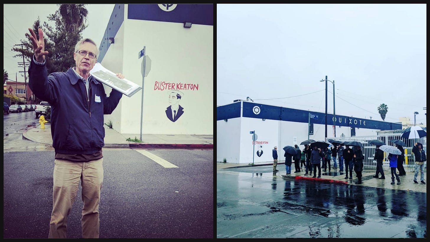 Our dear friend John Bengtson, the silent cinema sleuth who discovered early film locations hiding in plain sight, and used his imagination to travel through time and reveal how silent directors made magic, is with the angels now. We remain in awe of his incredible work, and how he kept his spirits up and kept creating, even while his body was growing weaker from ALS. We’ll treasure the memory of the tours we gave together, and pray that before much longer his greatest Hollywood discovery, Chaplin-Keaton-Lloyd Alley, is once again accessible with the illegal private gates removed and the alley declared an official city landmark in his honor. You can visit John’s world on YouTube, and we’ll be sharing some of his Westlake research on the Early Hollywood’s Silent Comedy Legends walk on April 18. RIP to one of life’s true gentlemen.